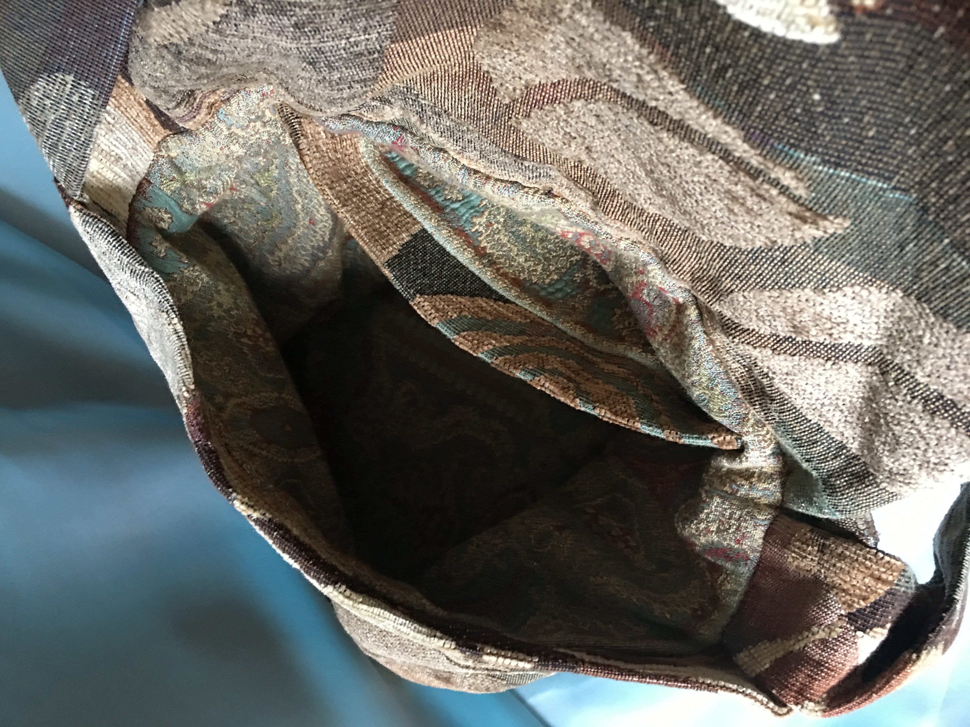 Beautiful western style tapestry outside, Florentine tapestry inside! Fabric designs placed to perfection. A workhorse satchel that will last forever!